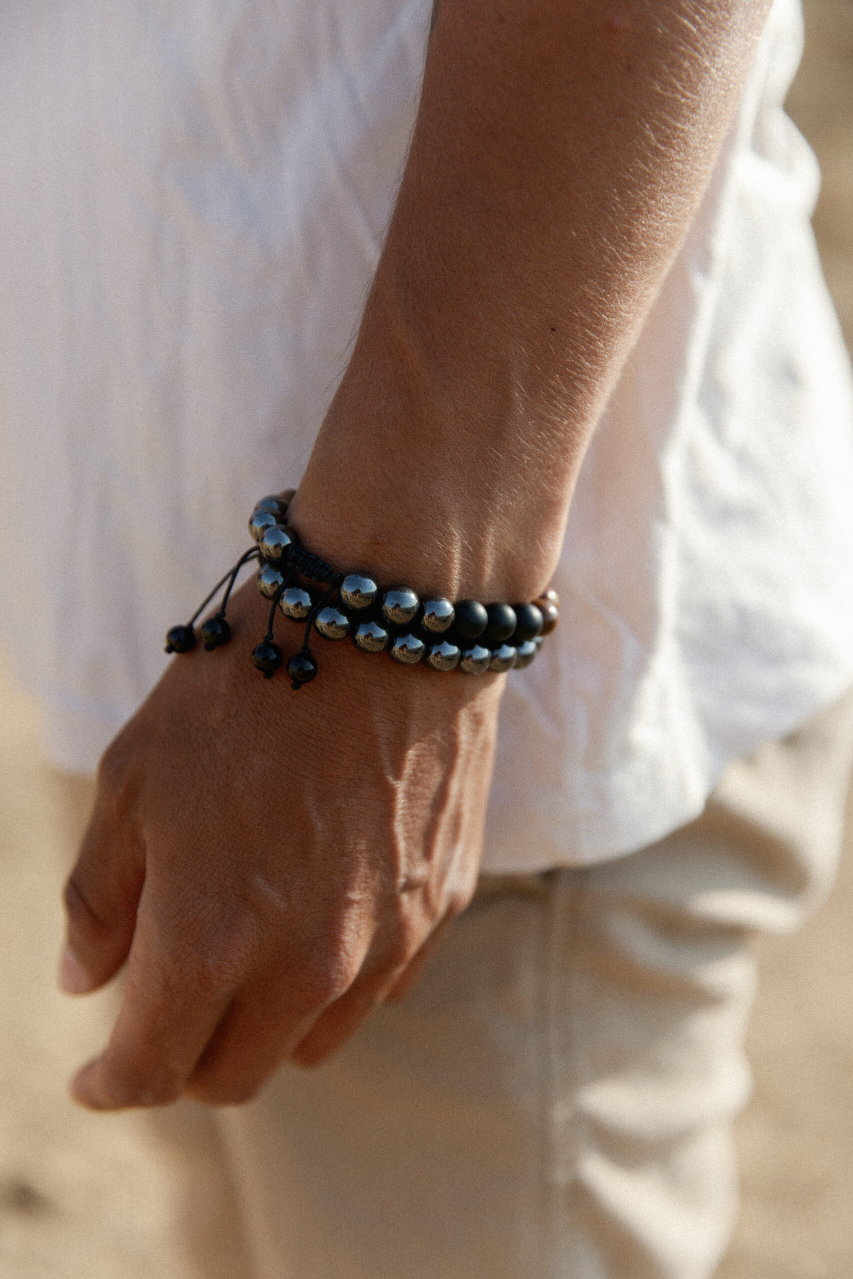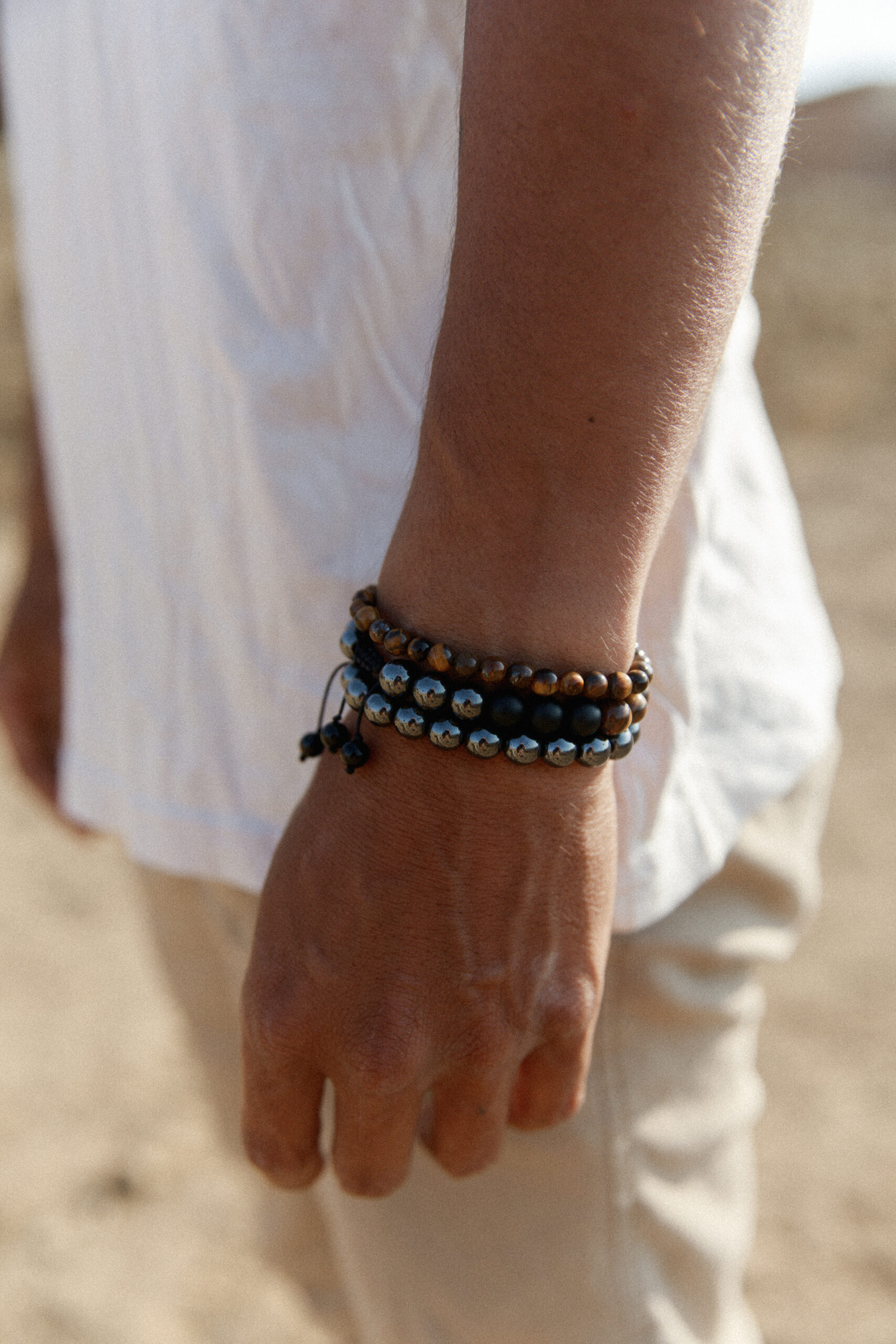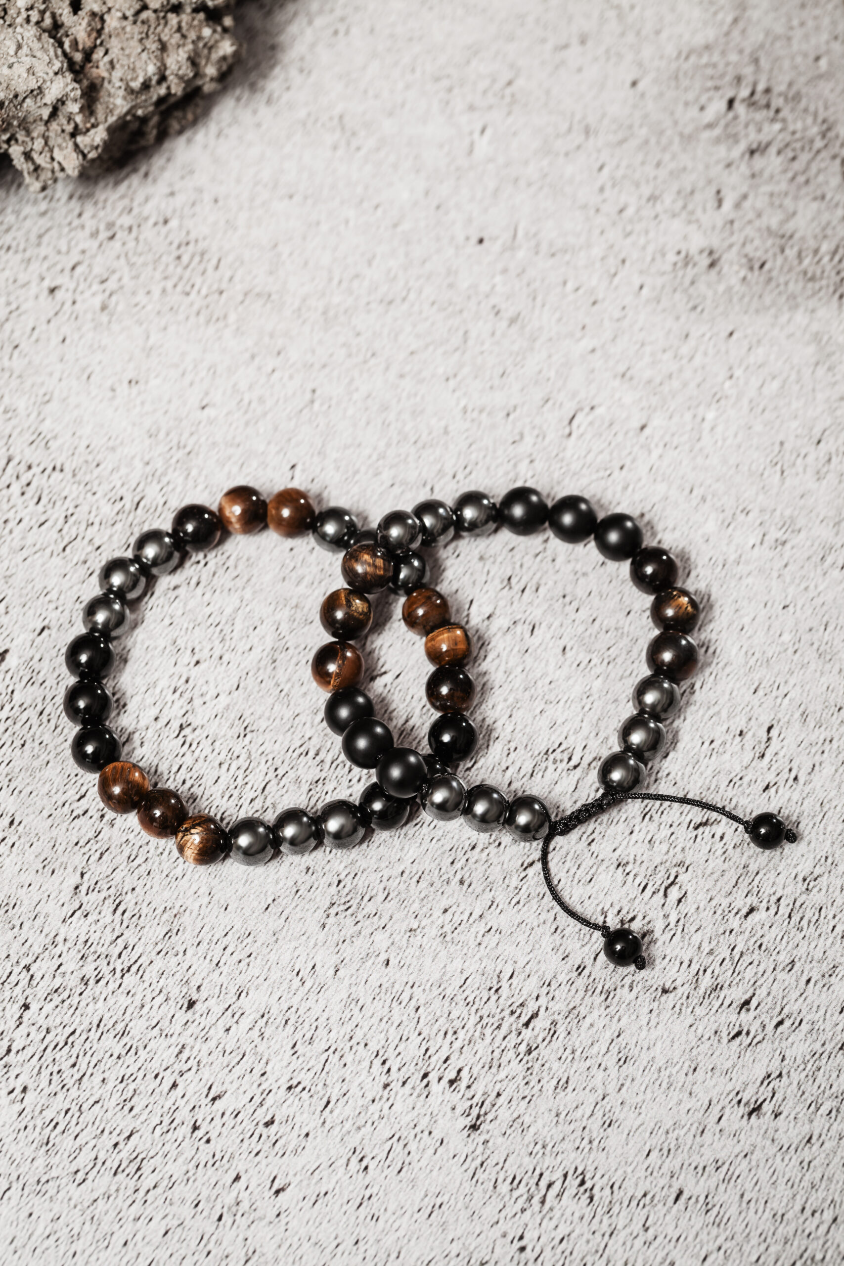 Pulsera Premium Shades: Hematita, Ojo de Tigre, Ónix Negro y Ónix se unen en un diseño exclusivo. Potencia tu estilo con elegancia y fuerza. 🤎⚫️